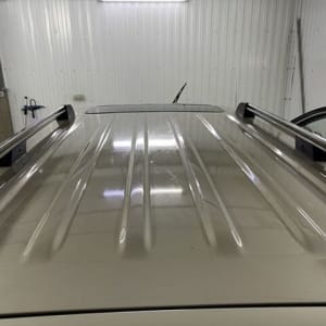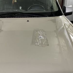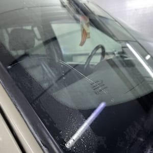 Есть небольшая трещина на лобовом (см. фото). Было небольшое ДТП (на фото видны притертости бампера).