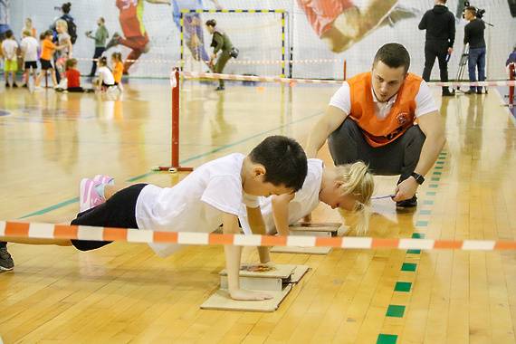 - силовые виды (сгибание и разгибание рук в упоре лёжа, подтягивания на высокой и низкой перекладинах, рывок гири 16 кг);