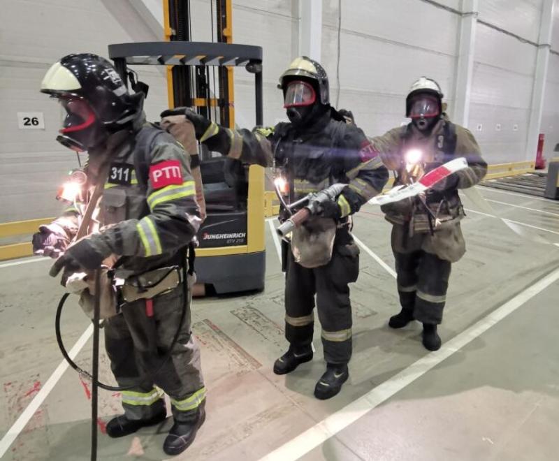Работники нескольких пожарных подразделений приняли участие в тренировочном пожарно-тактическом учении на складском комплексе «Адидас» в промзоне Новосёлки городского округа Чехов.