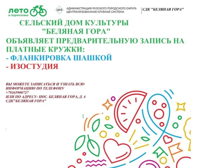 Беляногорский дом культуры Рузского городского округа объявляет набор в творческие студии – фланкировки шашкой и рисования.