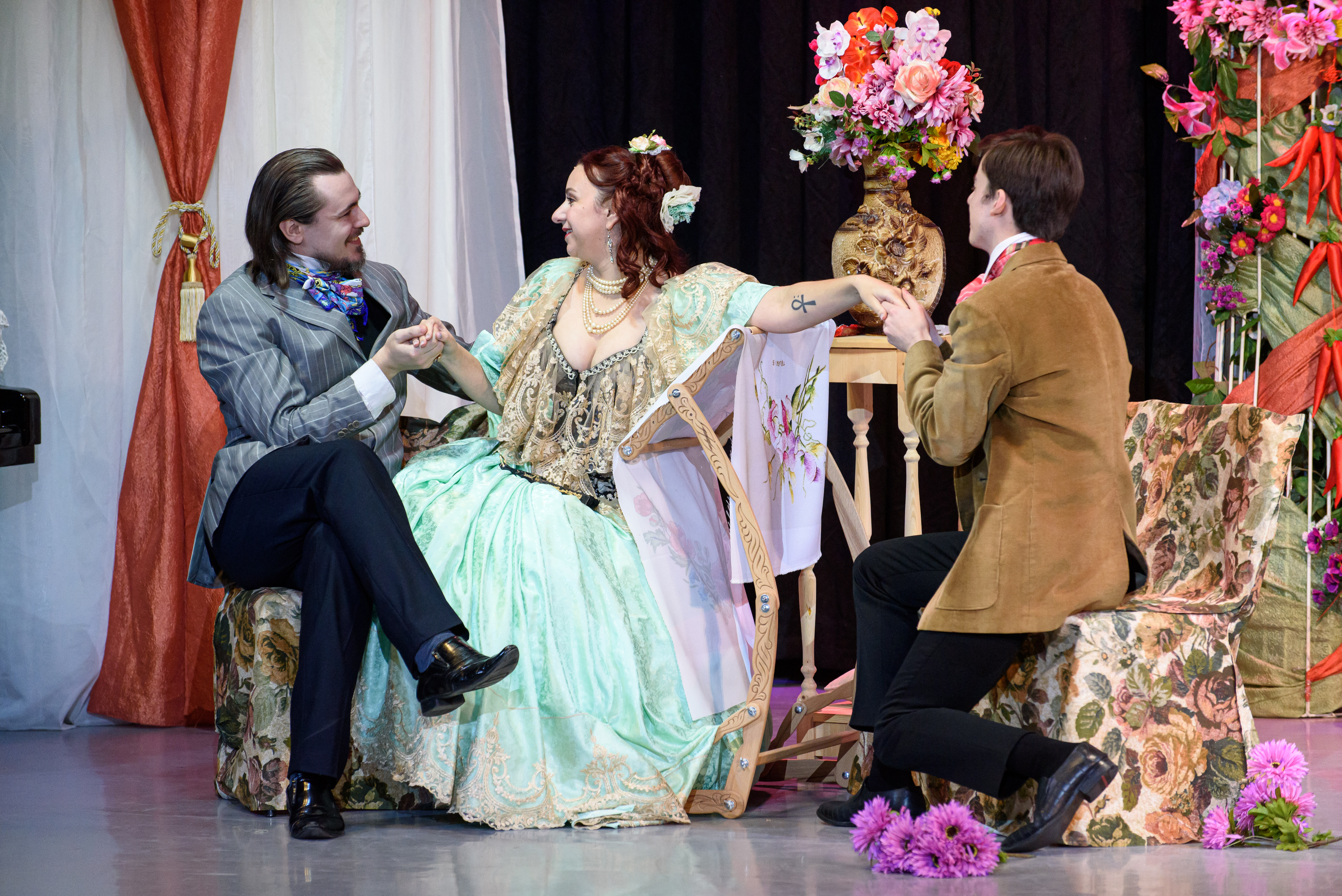 В год 200-летия Александра Островского по всей стране театры ставят его классику и вспоминают не столь известные постановки. «Бедная невеста», пожалуй, из вторых. Вечная тема драматурга – судьба женщины, превращённой в красивую игрушку, – в этой пьесе лишена трагического накала, да и итог вроде бы неплох: героиня принимает свою судьбу и навязанного ей жениха. «Стерпится-слюбится…» И режиссёр Ирина Орлова раскрыла и заострила всё, что в пьесе есть комедийного, сделав её пышной костюмированной буффонадой, чередой нелепых ситуаций и нестареющих шуток, которые не дают скучать залу все 2,5 часа спектакля. А кто вдруг задремал – того разбудит грохот подноса, который швыряет об пол горничная Даша: «Антракт!» Кто придумал эту фишку? «Кажется, я. Один раз уронила поднос на репетиции, и все говорят: «О да!» – улыбается Татьяна Марченко. – Вот то, что надо, чтобы зрителя держать в тонусе и поддерживать мой имидж «домашнего генерала».