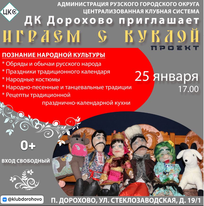 25 января в Дороховском доме культуры Рузского городсокго округа состоится лочередная встреча в рамках преокта «Играем с куклой».