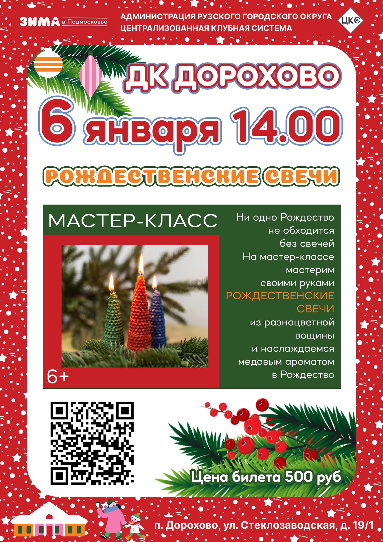 6 января в Дороховском доме культуры Рузского городского округа пройдет мастер-класс "Рождественские свечи".