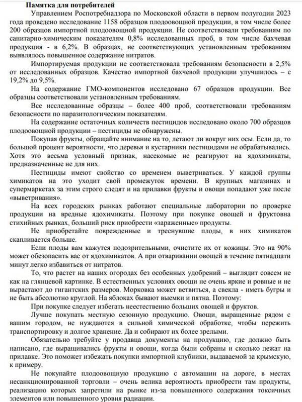 В период с 31 июля по 11 августа 2023 года Роспотребнадзор проводит «горячую линию» по качеству и безопасности плодоовощной продукции.