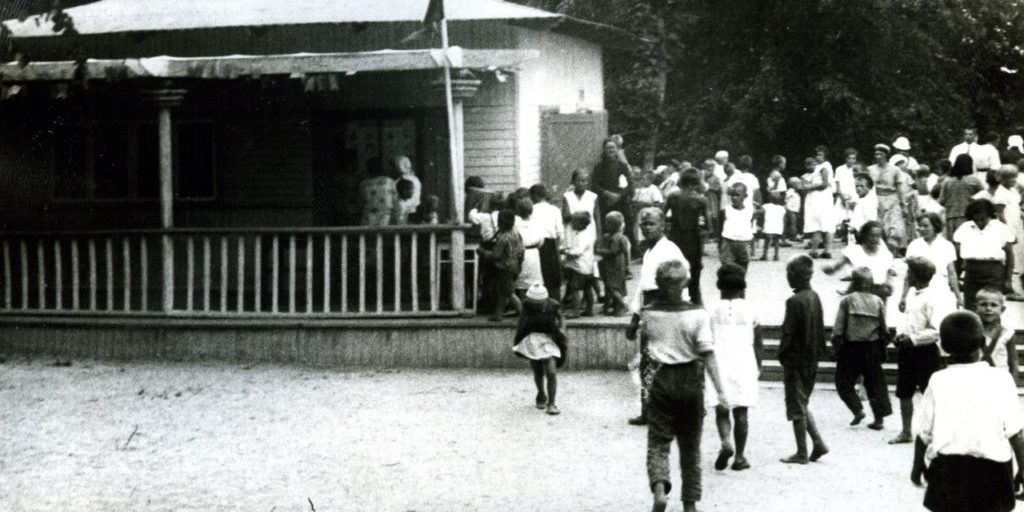 Вечером откроется веранда для танцев. Играет оркестр радиола. Работают буфет и палатки. <…>»