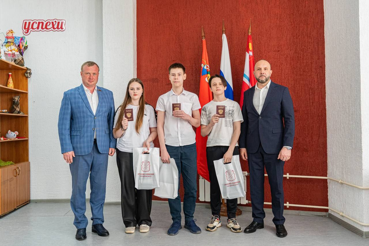 Первые взрослые документы ребятам вручили глава Орехово-Зуевского округа, заместитель секретаря местного отделения партии «Единая Россия» Руслан Заголовацкий и депутат Мособлдумы, член политсовета местного отделения партии «Единая Россия» Максим Коркин.