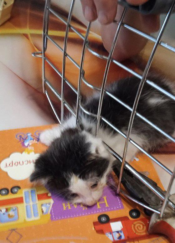 Инцидент произошёл в одном из жилых районов города, где котёнок оказался в затруднительном положении. По сообщению очевидцев, малышка пыталась вылезти из переноски, но её попытки закончились неудачей, и она застряла в дверце.