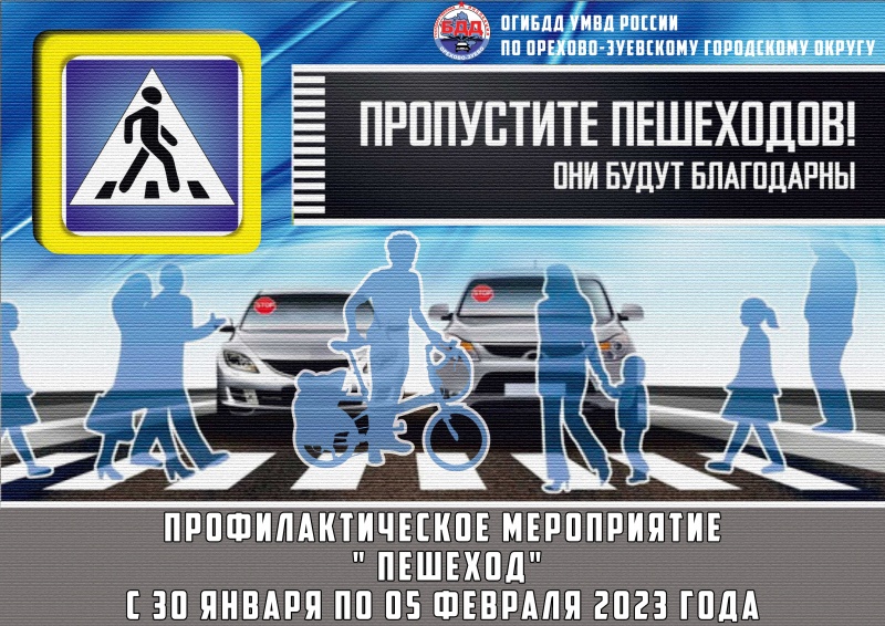 В целях профилактики дорожно-транспортных происшествий с участием пешеходов с 30 января по 5 февраля на территории обслуживания ОГИБДД УМВД России по Орехово-Зуевскому округу проводится профилактическое мероприятие «Пешеход!». В ходе рейда сотрудники Госавтоинспекции организуют проверки, направленные на выявление нарушений правил дорожного движения среди водителей и пешеходов.