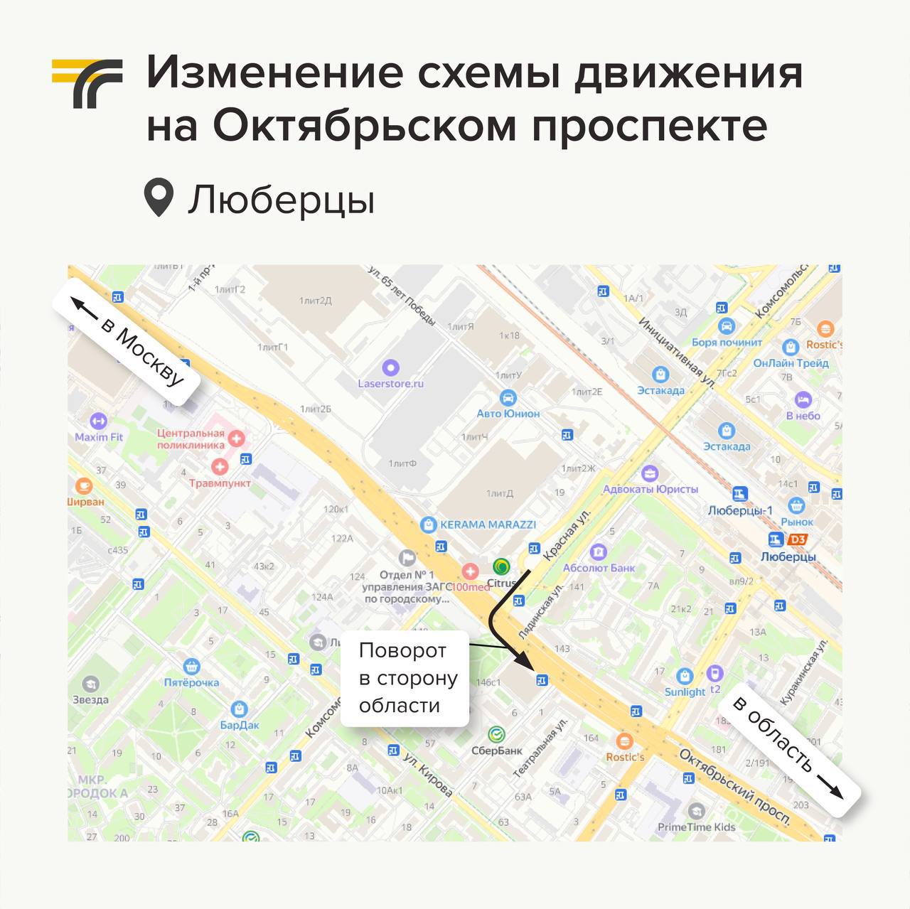 15029 просмотров В городском округе Люберцы в рамках первого этапа реконструкции Октябрьского проспекта с 28 декабря изменится схема движения транспорта,