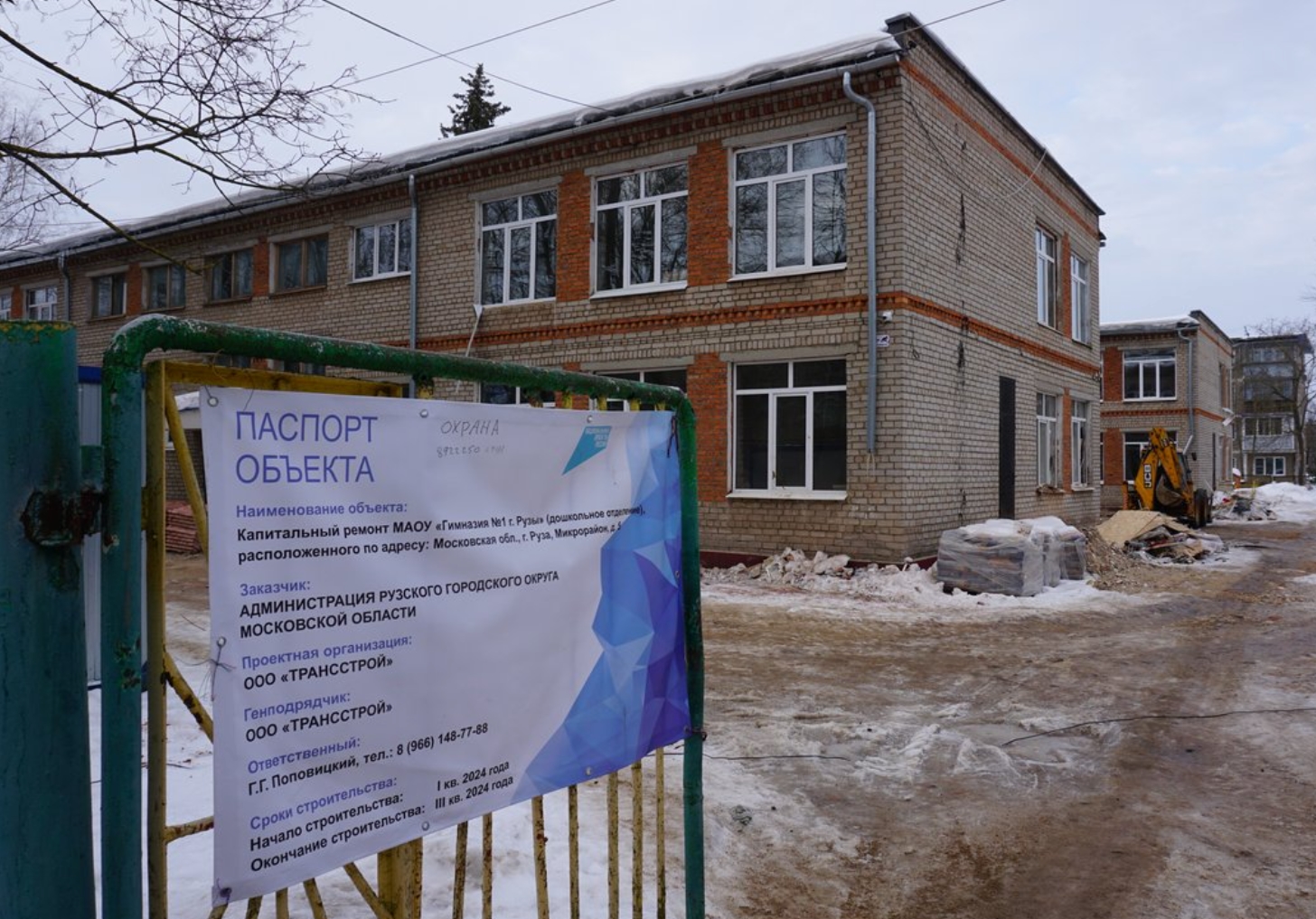 19 декабря 2023 года между администрацией Рузского городского округа и ООО «ТРАНССТРОЙ» был заключен муниципальный контракт по капитальному ремонту МАОУ «Гимназия №1 г. Рузы» (дошкольное отделение),