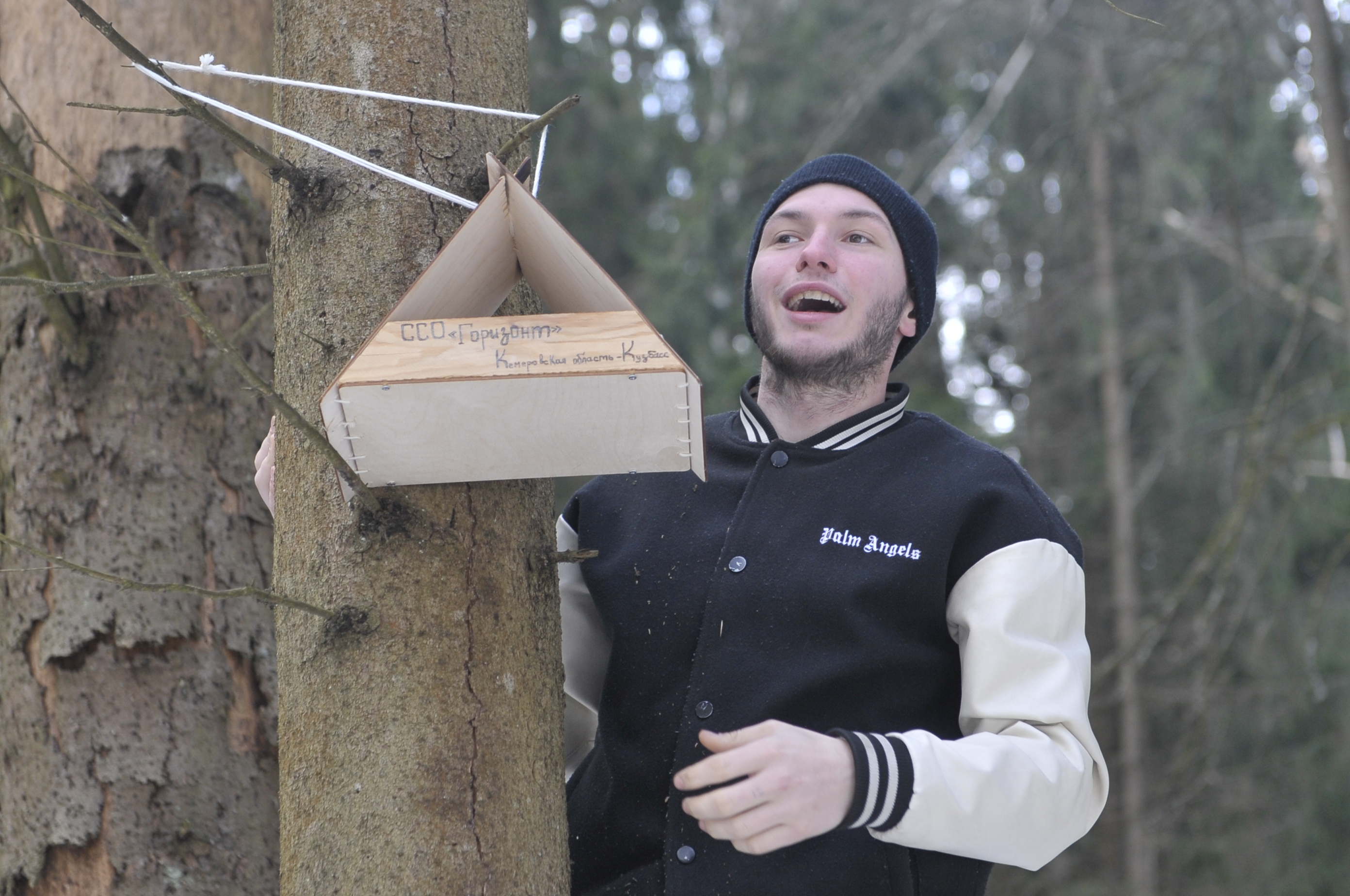 Таких креативных задумок вышло 14 – по числу отрядов. Кто-то делал кормушку в виде оранжевого ромба, а кто-то наоборот пошёл по известной схеме и смастерил стандартный домик. На память студенты подписали кормушки, а потом углубились в лес и повесили их на деревья.