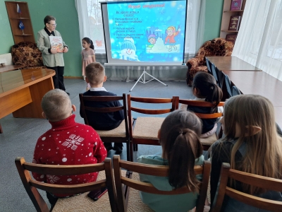 Библиотекарь показала ребятам тематическую презентацию, рассказала об опасностях, которые подстерегают на улице зимой.