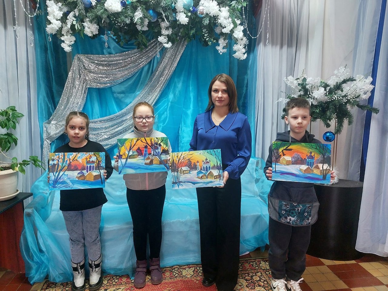 В Дороховском доме культуры состоялся мастер-класс Оксаны Водяниковой по акриловой живописи для начинающих «Зимний вечер».
