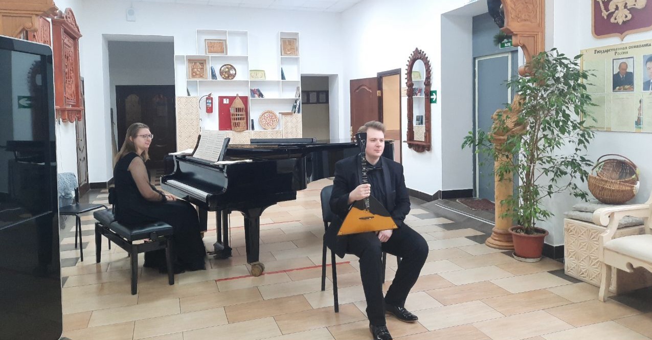 Перед гостями выступили Иван Юрков, лауреат Международных и Всероссийских конкурсов, дипломант специального фонда Президента республики Беларусь по поддержке талантливой молодежи, и концертмейстер Вероника Казначеева, лауреат Всероссийских и международных конкурсов.