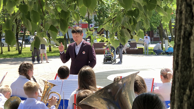 Днём оркестры играли в разных точках города. Всего было 8 концертных площадок. К примеру, в микрорайоне Восточный выступил детский духовой оркестр из села Ершово, городской округ Одинцово. А в сквере у администрации — «Сибемольки» из Каширы.