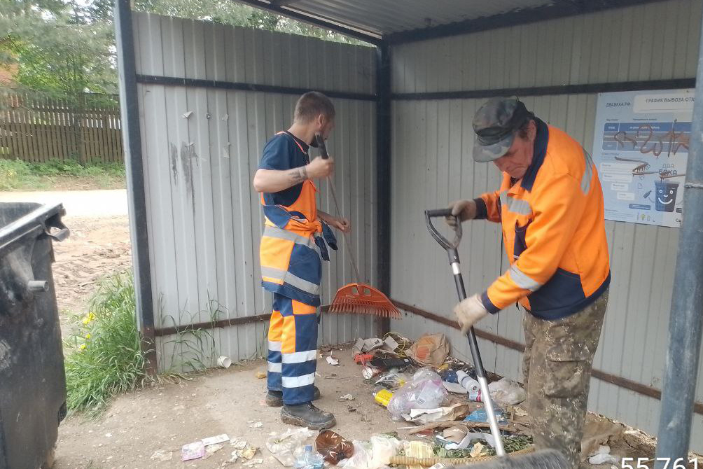 Сотрудники муниципального учреждения «Благоустройство» ежедневно приводят в порядок места сбора ТКО в населенных пунктах Рузского городского округа.