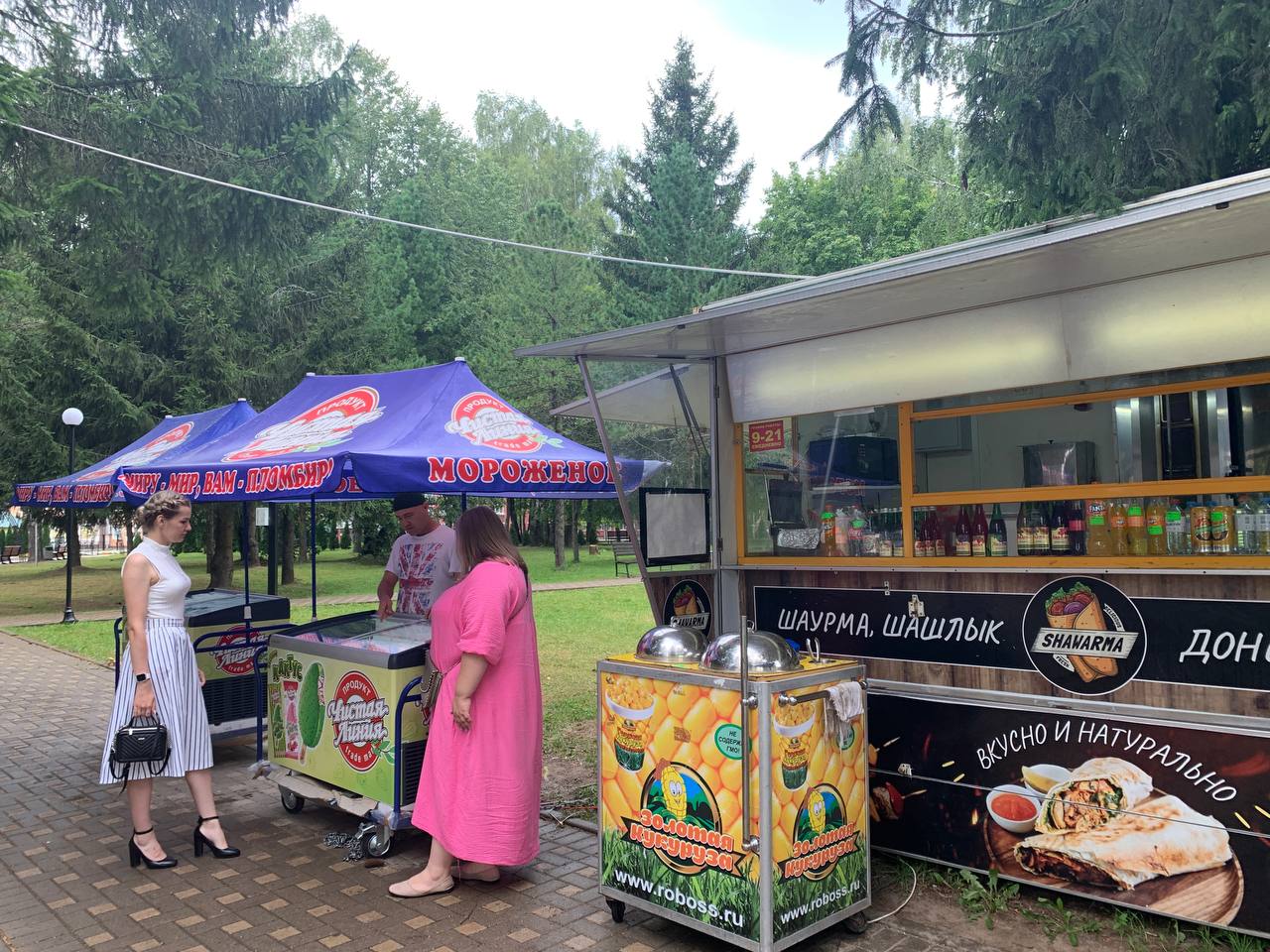 В парках Талдомского округа работают 9 мобильных торговых объектов (тележки с кукурузой, попкорном, мороженым) и 2 мобильных фудтрака.