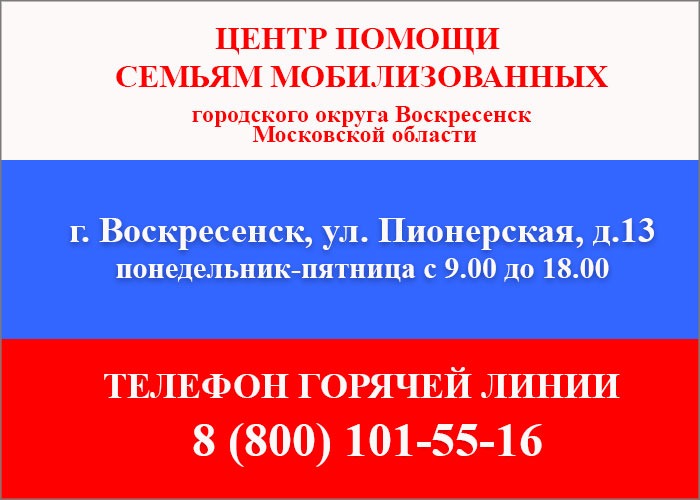 Напоминаем о том, что в Воскресенске работает Центр помощи семьям мобилизованных.