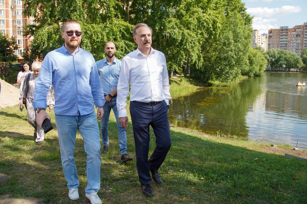 Председатель Совета депутатов городского округа Люберцы, секретарь местного отделения «Единой России» Владимир Ружицкий проверил реконструкцию парка «Наташинские пруды».
