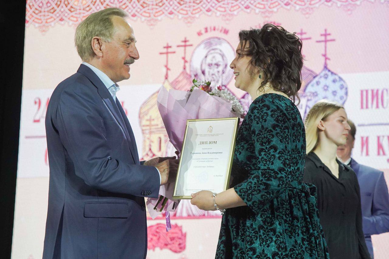 «Вручил диплом именной стипендии губернатора Московской области «Молодой талантливый автор» концертмейстеру хореографической школы Анне Турпановой за создание сборника детских песен «Ступеньки доброты». Наградами отмечены также сотрудники библиотечной системы округа.
