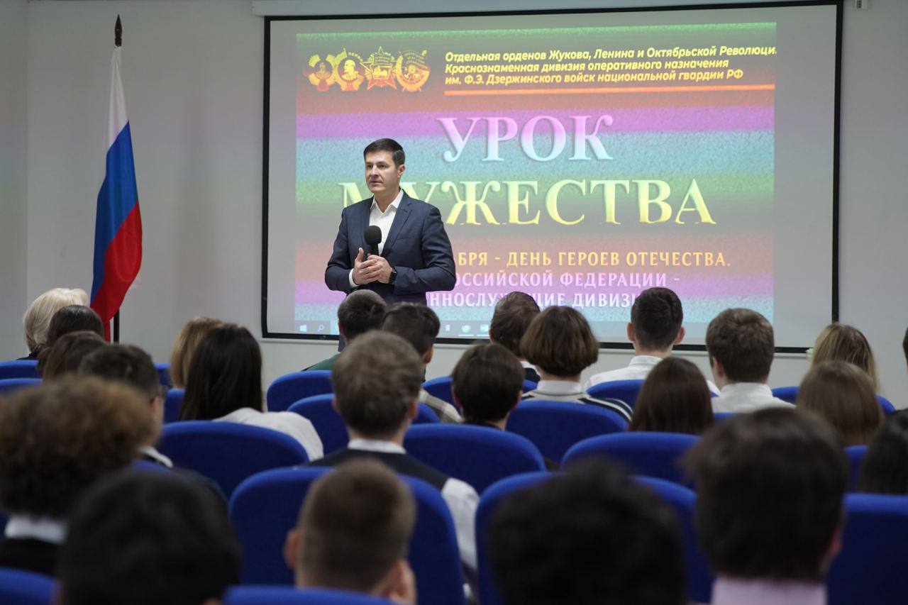 Глава городского округа Люберцы Владимир Волков принял участие в уроках мужества в лицее №4 (корпус 2) и в техникуме имени Героя Советского Союза лётчика-космонавта Ю. А. Гагарина, их провели бойцы дивизии имени Дзержинского.