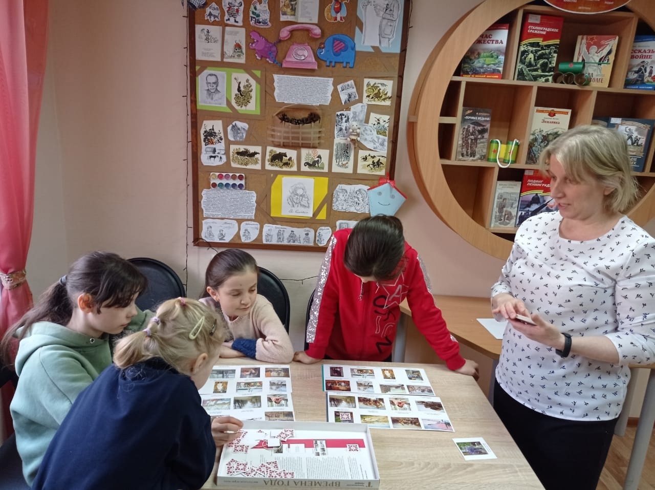 Старшие ребята играли в настольный футбол, а с младшими библиотекари провели игру «Времена года». Это настольная игра-лото, которая знакомит детей с произведениями, которые хранятся в Государственной Третьяковской галерее.