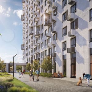 Монолитные корпуса "Мытищи Парк" с вентилируемыми фасадами и долговечной отделкой. Входные группы на уровне земли создают безбарьерную, комфортную среду. В лобби оборудуют места для хранения колясок и велосипедов и установят бесшумные лифты.