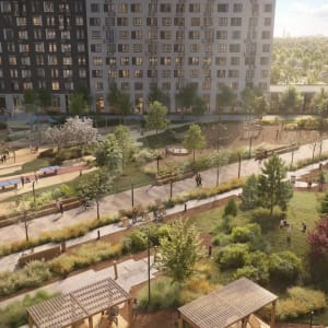 В рамках проекта - три детских сада, две школы и спортивно-оздоровительный комплекс. В зеленых зонах будут оборудованы места для тихого отдыха, появится аллея для прогулок и площадка для праздников.