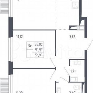 - Общая площадь: 52 м²