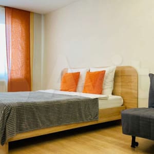 Квартира укомплектована современной бытовой техникой и мебелью.