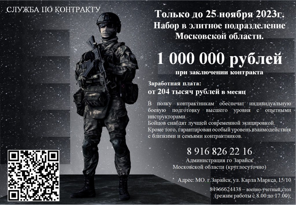 Набор на контрактную службу в элитное подразделение проходит в Зарайске до 25 ноября.