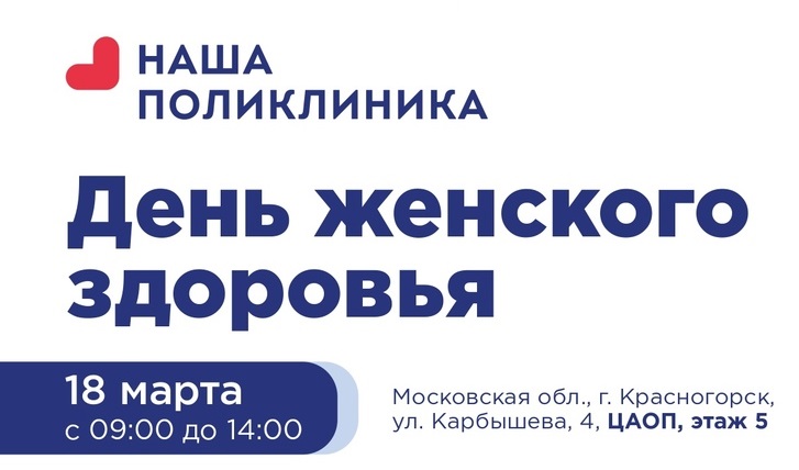 Обследование пройдёт 18 марта с 9 до 14 часов по адресу: г. Красногорск, ул. Карбышева, 4. Здание поликлиники, 5 этаж.